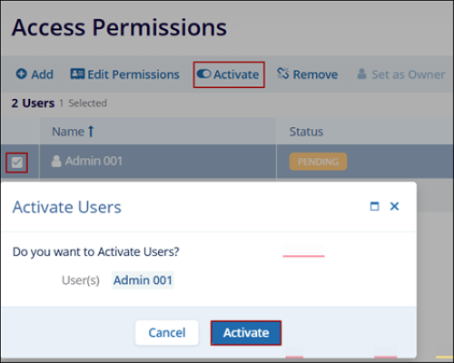 - Select a user with Pending status by clicking on the checkbox.