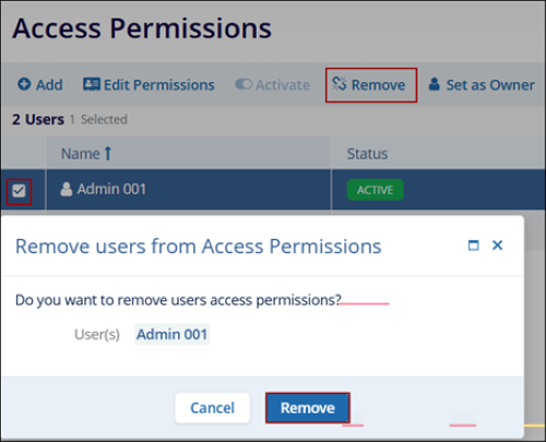 - Click on the Remove button on the Remove Users from Access Permissions confirmation