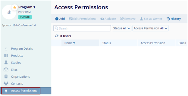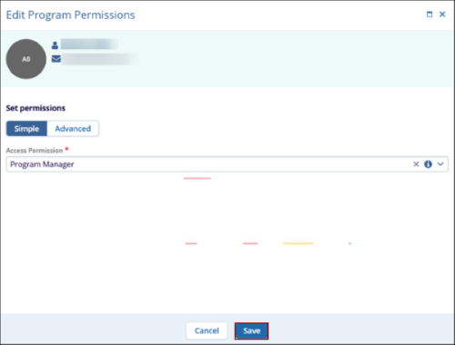 To manage the access permissions at the Program level, follow the steps below: