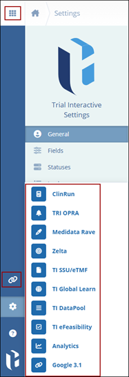 - Click on the waffle icon to expand the side menu bar and select Links.
