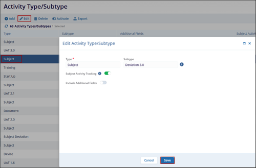 - Make the required edits on the Edit Activity Type/Subtype window and click on the
