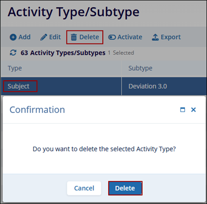Delete Activity Type