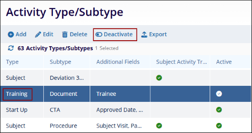 To deactivate an activity type, follow the steps below: