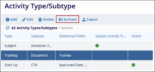 To edit, select an activity type/subtype, follow the steps below.