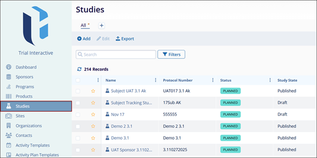 - From the left-hand navigation pane, click on the Studies link. This opens the