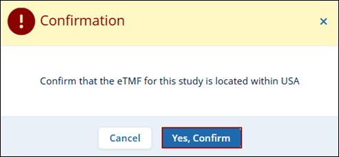 regarding the ETMF location. Users need to confirm the location and click on the Yes,