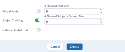 - Click the Toggle buttons for Virtual Study, Subject Tracking, and Is this a blinded trial. These fields are optional.