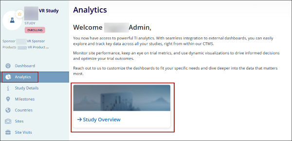 - On the Study Details screen, click on Analytics from the left-hand navigation pane.