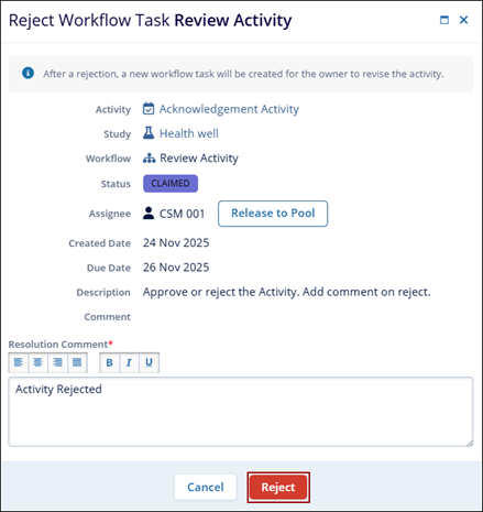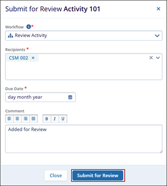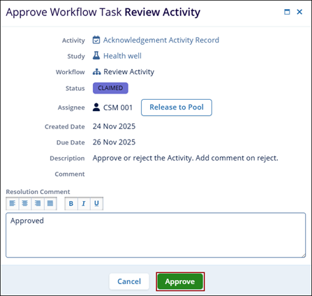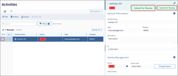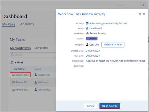 - On the Workflow Task Review Activity pop-up, click on Open Activity.