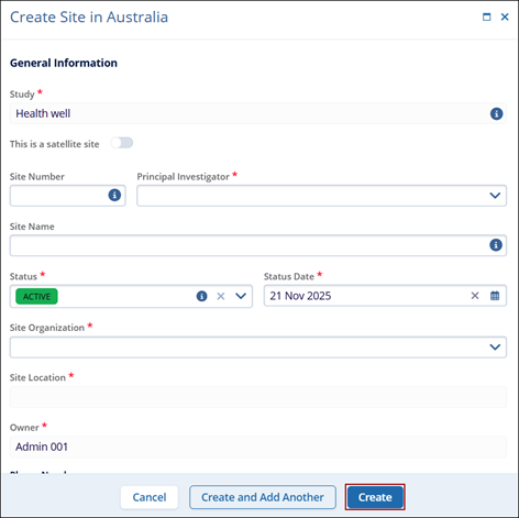 - Fill in the required information and click Create.