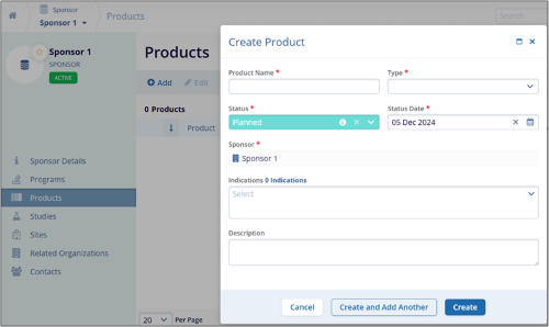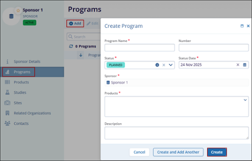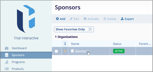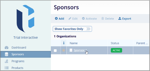 - On the Sponsor Details screen, click on the Program link from the left-hand Navigation menu.