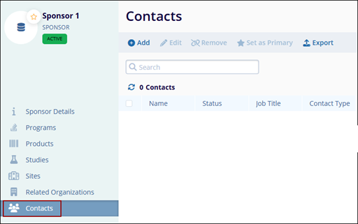 - On the Sponsor details screen, select Contacts from the left-hand navigation menu.