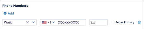 - Specify the phone number type i.e., Work, Mobile, Office, or Fax.