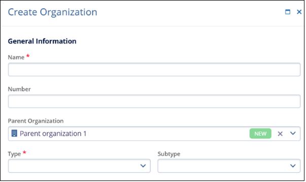 Note:- To create a Parent Organization, it is mandatory fields Name, Type, and Status which are marked with an asterisk (*) next to the field title. Other fields are optional.