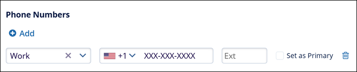 - Specify the phone number type i.e., Work, Mobile, Office, or Fax.