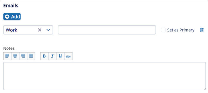 - In the Emails section, click on the +Add and enter the email address in the provided field.