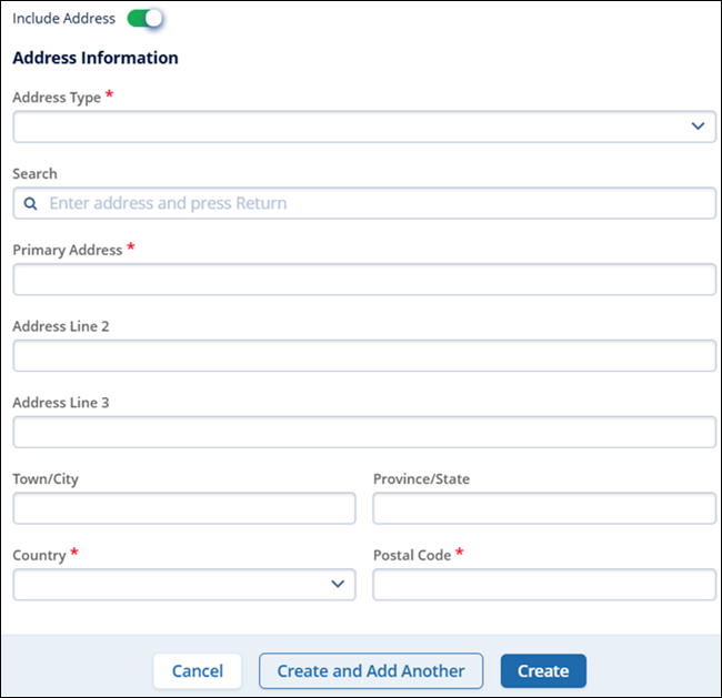 - Enable the Include Address toggle switch to include an address and enter the