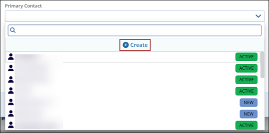 - Primary Contact: To add a contact to the organization, click on the drop-down arrow