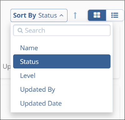 - Click on the Sort By dropdown and select the appropriate sorting criteria. By default, the Status sorting criteria are applied.