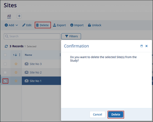 To delete a site, follow the steps below: