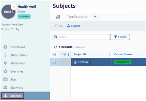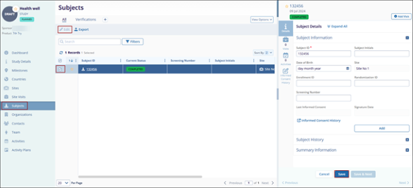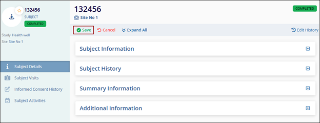 - On the Subject Details screen, click on the Edit button, from the top menu bar.