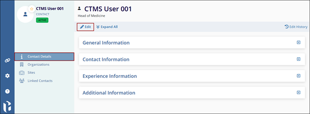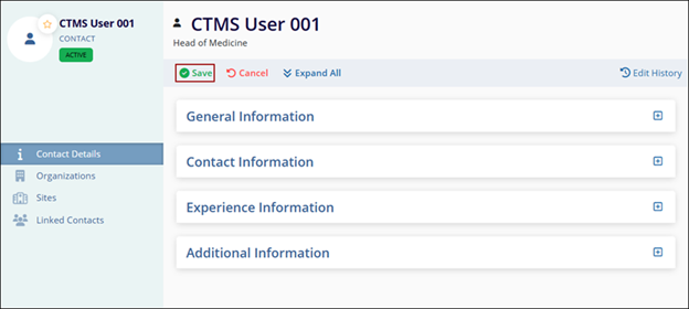 - Expand the General Information, Contacts, Experience Information, and Additional Information sections and make the required changes.