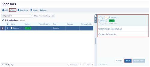Note: Click on the Save & Next button to edit another sponsor from the