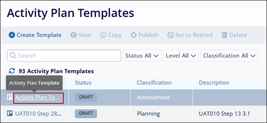 Do not click on the plan name since it directly opens the Edit Activity Plan Template screen which is another method to edit an activity plan.