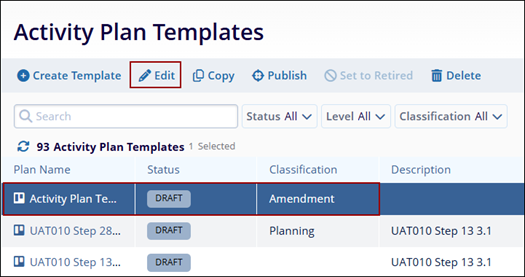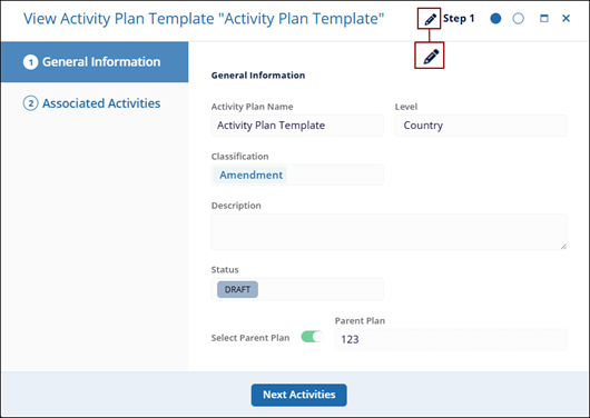 - Click on the Edit (Pencil) icon on the View Activity Plan Template.