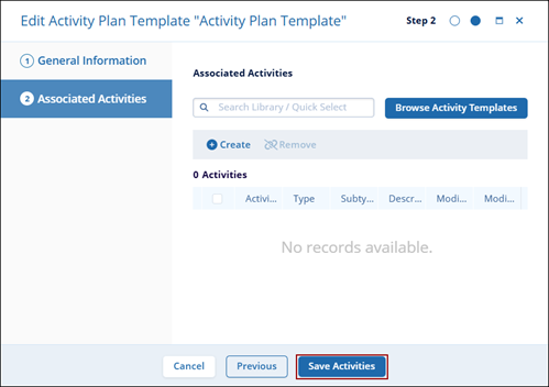- On the Edit Activity Plan Template Window, access the General Information and Associated