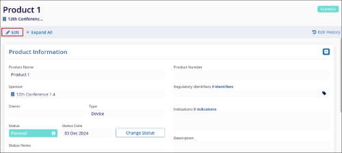 - On the Product Details screen, click on the Edit (pencil) icon.