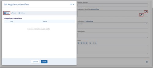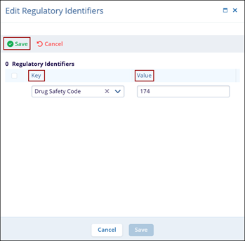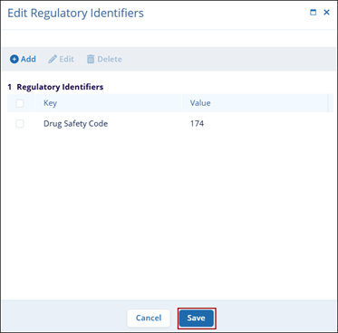- Click on the checkbox for the newly added Regulatory Identifier and click on