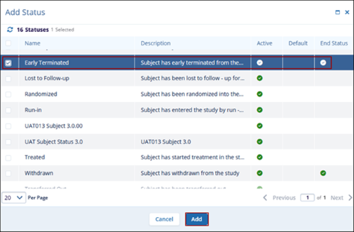 Note: Previously selected statuses are grayed out and cannot be selected.