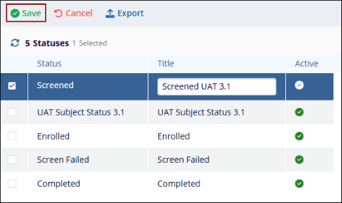 - Select a status to delete by clicking on the checkbox