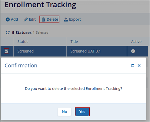 To delete enrollment tracking record, follow the steps below.