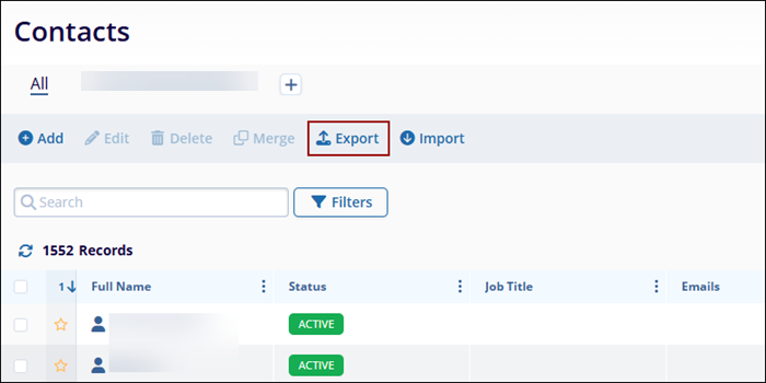 - On the Contacts screen, click on Export from the top menu bar.