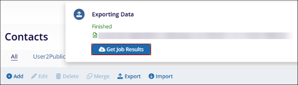 - Click on the Get Job Results option to download the export file on the local