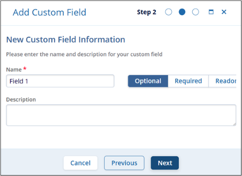 - In Step 2, mandatorily add a name for the field. Optionally add