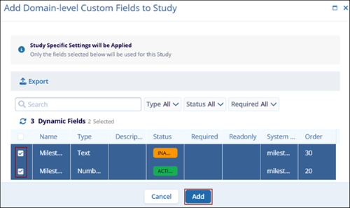 Follow the steps below to apply study-specific settings for – Milestones, Sites, Studies, Countries, Subjects, Subject Visits, and Team Members.