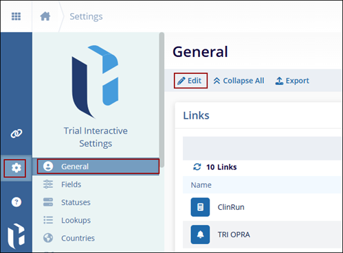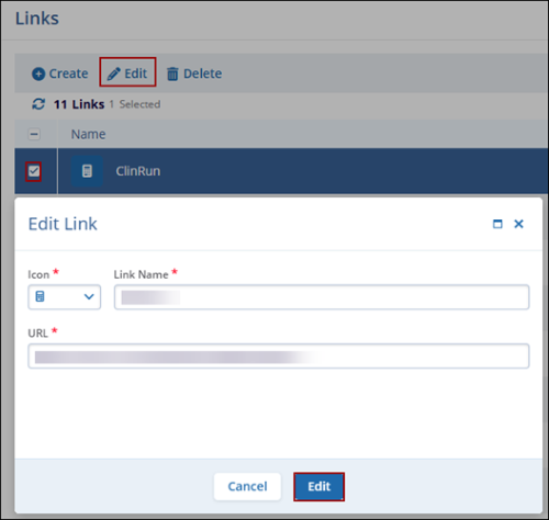 - To edit a link, select a link and click on the Edit button from the top menu bar.