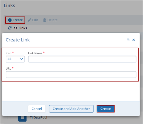- On the Create Link from, select an icon from the dropdown list, specify the link
