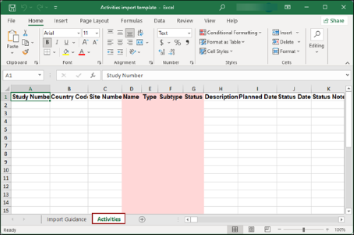- Within the downloaded template, fill in the necessary information in the Activities