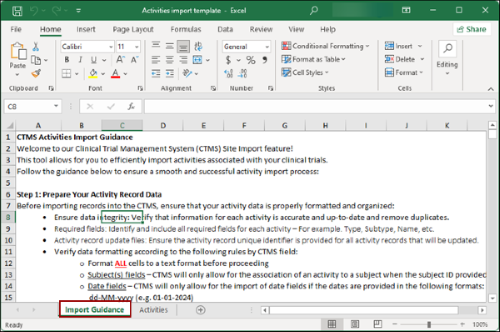 - For detailed instructions on the import process, click on the Import Guidance tab.