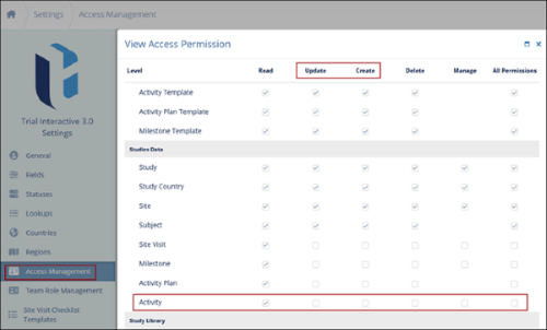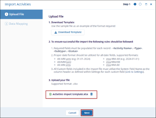 Important: To import activities, users must have the Create and Update permissions enabled for Activities from Settings > Access Permissions.