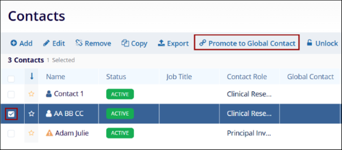 - Click on the Promote to Global Contact button