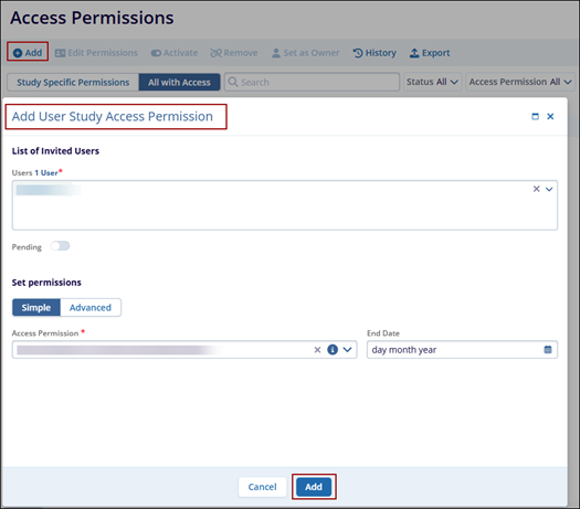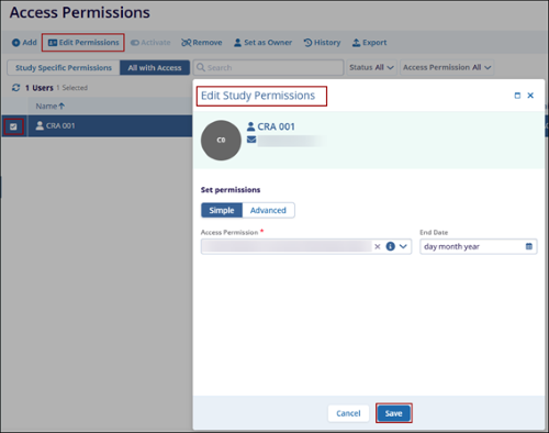 Add users to study access permissions