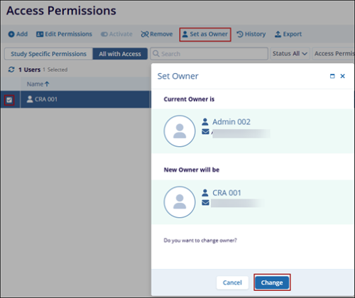 - Click on the Set as Owner button.