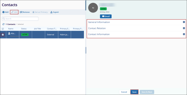 - Make changes to the General Information, Contact Relation, and Contact Information sections.