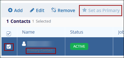 - Select a contact to set as a primary.