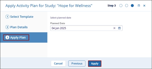- On the Apply Plan screen in Step 3, select the planned date and click on the